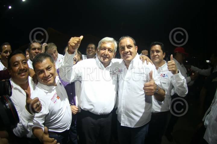 CUERNAVACA, MORELOS, 16JUNIO2018.- Simpatizantes de Andrés Manuel López Obrador, candidato presidencial de la coalición Juntos Haremos Historia (Movimiento de Regeneración Nacional, Partido Encuentro Social y Partido del Trabajo) y de Cuauhtémoc Blanco Bravo candidato a la gubernatura en su cierre de campaña en el estado. FOTO: MARGARITO PÉREZ RETANA /CUARTOSCURO.COM