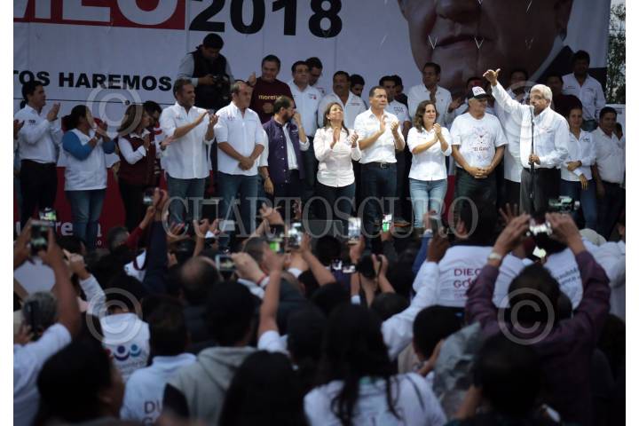 CUERNAVACA, MORELOS, 16JUNIO2018.- Simpatizantes de Andrés Manuel López Obrador, candidato presidencial de la coalición Juntos Haremos Historia (Movimiento de Regeneración Nacional, Partido Encuentro Social y Partido del Trabajo) y de Cuauhtémoc Blanco Bravo candidato a la gubernatura en su cierre de campaña en el estado. FOTO: MARGARITO PÉREZ RETANA /CUARTOSCURO.COM
