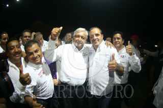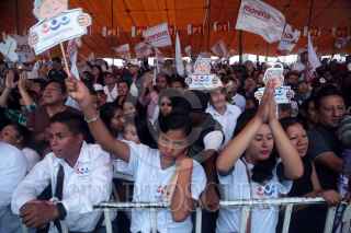 CUERNAVACA, MORELOS, 16JUNIO2018.- Simpatizantes de Andrés Manuel López Obrador, candidato presidencial de la coalición Juntos Haremos Historia (Movimiento de Regeneración Nacional, Partido Encuentro Social y Partido del Trabajo) y de Cuauhtémoc Blanco Bravo candidato a la gubernatura en su cierre de campaña en el estado. FOTO: MARGARITO PÉREZ RETANA /CUARTOSCURO.COM