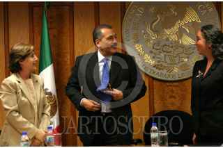 MEXICO, D.F. 26ABRIL2005.- Al centro Manlio Fabio Beltrones, presidente de la mesa directiva de la Cámara de Diputados luego de firmar el convenio para ayudar a esclarecer los homicidios de mujeres en Cd. Juárez, con la directora general de la UNIFEM en México Ma. Teresa Rodríguez (izq), a la derecha la diputada del PRD, Marcela Lagarde. FOTO: Sandra Perdomo/CUARTOSCURO.COM