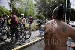 PUEBLA, PUEBLA, 17JUNIO2018.- Unas 30 personas participaron en la jornada internacional de la Rodada Nudista 2018, exigiendo respeto al ciclista luego de que en la capital poblana van 28 atropellados en los que va del año. FOTO: HILDA RÍOS/CUARTOSCURO.COM