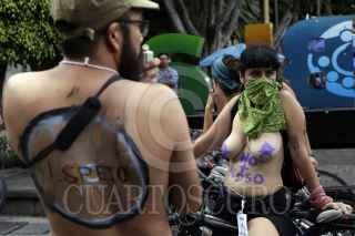 PUEBLA, PUEBLA, 17JUNIO2018.- Unas 30 personas participaron en la jornada internacional de la Rodada Nudista 2018, exigiendo respeto al ciclista luego de que en la capital poblana van 28 atropellados en los que va del año. FOTO: HILDA RÍOS/CUARTOSCURO.COM