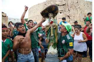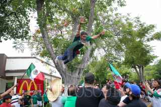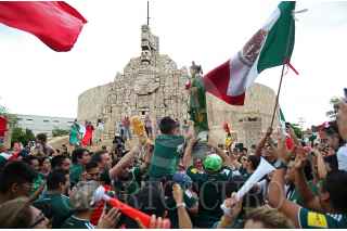 MÉRIDA, YUCATÁN, 17JUNIO2018.- Cientos de yucatecos acudieron al Monumento a la Patria para festejar el triunfo de la selección mexicana ante Alemania 1-0 en su primer partido del Mundial de Rusia 2018. FOTO: FRANCISCO BALDERAS /CUARTOSCURO.COM