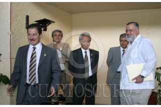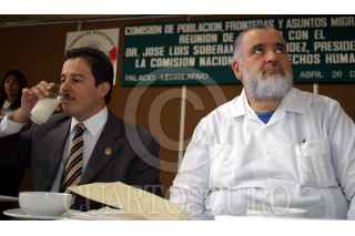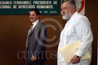 MEXICO, D.F. 26ABRIL2005.- El diputado Juan Antonio Guajardo Anzaldua, presidente de la comisión de Población, Fronteras y Asuntos Migratorios y el presidente de la CNDH, José Luis Soberanes, antes de la reunión de trabajo sostenida en el salón de los Cristales en San Lázaro. FOTO: Sandra Perdomo/CUARTOSCURO.COM
