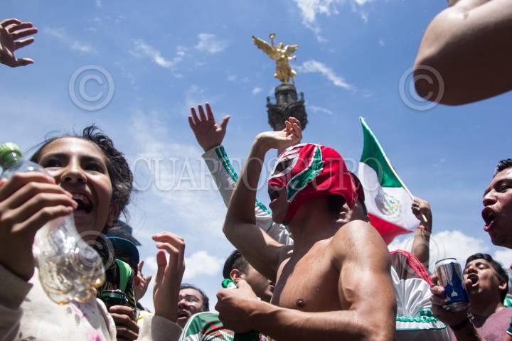 GUADALAJARA, JALISCO, 17JUNIO2018.- Miles de tapatíos se dieron cita en la Glorieta de la Minerva, para celebrar la victoria del la Selección Mexicana de Futbol quien venció a su similar de Alemania esta mañana en el Mundial del Futbol Rusia 2018. FOTO: CUARTOSCURO.COM