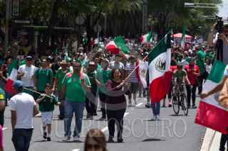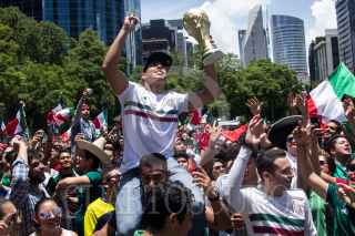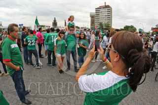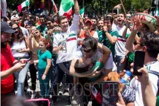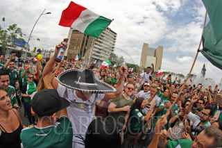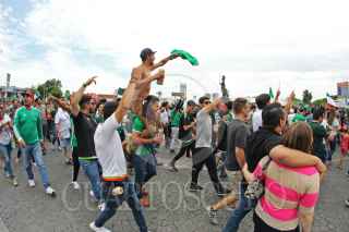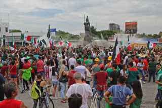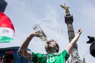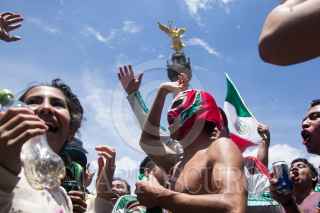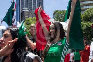 GUADALAJARA, JALISCO, 17JUNIO2018.- Miles de tapatíos se dieron cita en la Glorieta de la Minerva, para celebrar la victoria del la Selección Mexicana de Futbol quien venció a su similar de Alemania esta mañana en el Mundial del Futbol Rusia 2018. FOTO: CUARTOSCURO.COM
