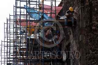 CUERNAVACA, MORELOS, 19JUNIO2018.- Bajo la supervisión del Instituto Nacional de Antropología e Historia, albañiles trabajan en la remediación del Palacio de Cortes, el cual resulto afectado por el sismo del pasado mes de septiembre. FOTO: MARGARITO PÉREZ RETANA /CUARTOSCURO.COM
