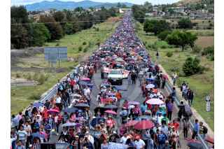 ASUNCIÓN NOCHIXTLAN, OAXACA, 19JUNIO2018.- Habitantes, familiares, dirigentes de la comisión de Victimas del 19 de junio del 2016 en Nochixtlán y maestros de la región Mixteca, de la sección 22 de la coordinadora Nacional de Trabajadores de la Educación (CNTE). Marcharon por calles principales y carretera donde hace dos años integrantes de la Policía Federal participaron en el desalojo violento en contra de profesores y padres de familias quienes bloqueaban la carretera en busca de mesas de diálogo para la abrogación de la Reforma Educativa y dónde hubo 8 asesinados y 120 heridos de bala. FOTO: ANDREA MURCIA /CUARTOSCURO.COM