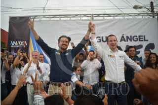 XALAPA, VERACRUZ, 19JUNIO2018.- El candidato de la coalición "Por Mexico Al Frente", Ricardo Anaya, realizó un recorrido en una colonia popular de la ciudad capital acompañado del candidato al gobierno del estado, Miguel Angel Yunes Márquez. FOTO: ALBERTO ROA /CUARTOSCURO.COM