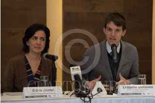 CIUDAD DE MÉXICO, 19JUNIO2018.- Edna Jaime, directora general de México Evalua, y Lépold Stefanini, segundo consejero de la Embajada de Francia en México, presentaron la convocatoria de la primera edidicón del "Foro de París sobre la Paz", el cual busca reunir jefes de Estado y Gobierno, titulares de prganismos multilaterales y representantes de la sociedad civil que busquen soluciones en materia de paz y seguridad, medio ambiente, desarrollo, nuevas tecnologías y economía inclusiva, que se llevará a cabo del 11 al 13 de noviembre en La Grande Halle de la Villete en París. FOTO: MARIO JASSO /CUARTOSCURO.COM