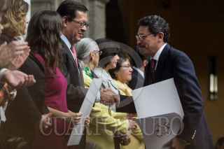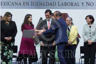 CIUDAD DE MÉXICO, 20JUNIO2018.- Alexandra Haas, Presidenta del Consejo Nacional para Prevenir la Discriminación (CONAPRED), y Roberto Campa Cifrián, secretario de Trabajo y Previsión Social, durante la entrega de reconocimientos a centros de trabajo certificados en la Norma Mexicana en Igualdad Laboral y No Discriminación en 2017. FOTO: GALO CAÑAS /CUARTOSCURO.COM