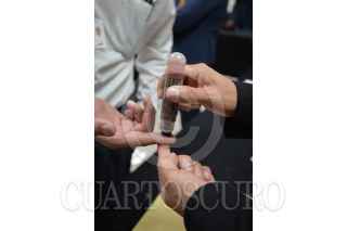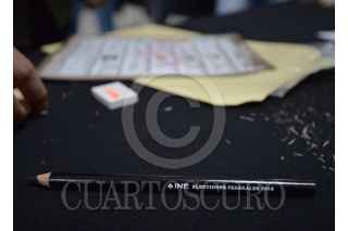 TOLUCA, ESTADO DE MÉXICO, 20JUNIO2018.- Funcionarios del INE y del IEEM realizaron una prueba de la tinta indeleble y del crayón que será utilizara en las elecciones del 1 de julio, para demostrar que no se borran. FOTO: ARTEMIO GUERRA BAZ /CUARTOSCURO.COM