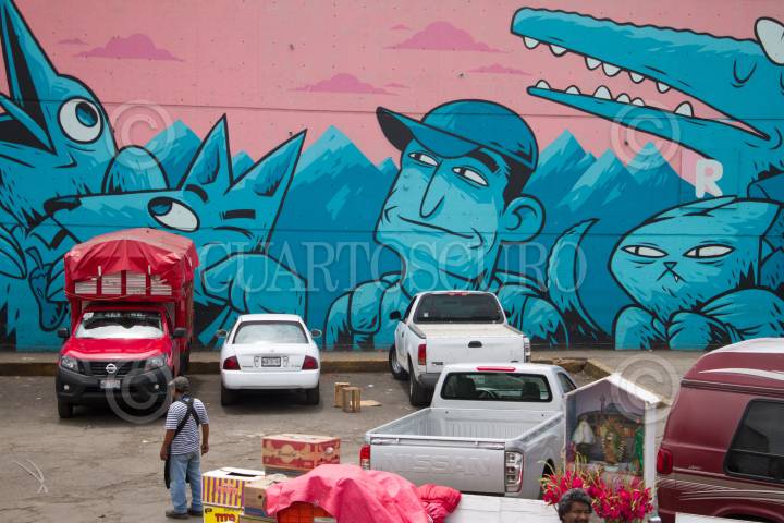 CIUDAD DE MÉXICO, 20JUNIO2018.- Presentación de los murales en las bodegas de la Central de Abasto como parte del proyecto "Central de Muros", galeria al aire libre la más grande de latinoamérica. El evento tuvo lugar este medio dia. FOTO: VICTORIA VALTIERRA /CUARTOSCURO.COM