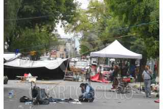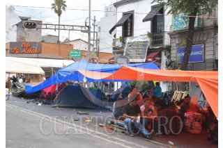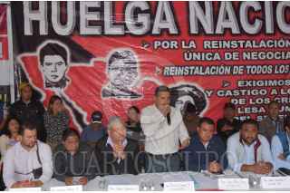 CIUDAD DE MÉXICO, 20JUNIO2018.- Líderes de la Coordinadora Nacional de Trabajadores de la Educación ofrecieron conferencia previo al levantamiento del Plantón de maestros, que llevaba 17 días sobre la Av. Bucareli y Morelos. Durante el trascurso de hoy y la noche se retiraran a sus diferentes estados. FOTO: ARMANDO MONROY /CUARTOSCURO.COM