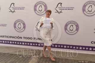 CIUDAD DE MÉXICO, 20JUNIO2018.- Lorena Osornio, candidata independiente a la jefatura de gobierno de la Ciudad, a su entrada a las instalaciones en donde se realizará el tercer debate a la elección de la Jefatura de Gobierno de la Ciudad. FOTO: ADOLFO VLADIMIR /CUARTOSCURO.COM