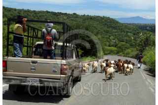COATETELCO, MORELOS, 20JUNIO2018.- Un pastor guia su rebaño de chivos en una carretera que conduce a este recien creado municipio indigena. FOTO: MARGARITO PÉREZ RETANA /CUARTOSCURO.COM