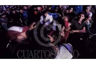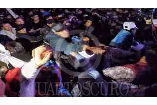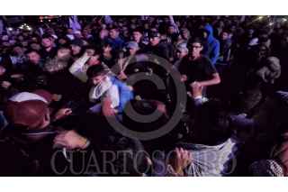 PACHUCA, HIDALGO, 20JUNIO2018.- Jóvenes asistentes a un mitin de Andrés Manuel López Obrador se enfrentaron con simpatizantes, mientras el candidato presidencial les pedía calma y no responder las agresiones. FOTO: ISAAC ESQUIVEL /CUARTOSCURO.COM
