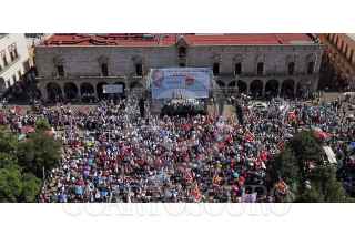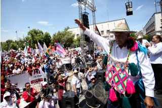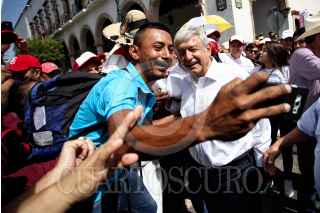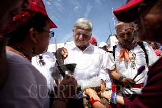 DURANGO, DGO., 21JUNIO2018.- Andrés Manuel López Obrador, candidato a la presidencia de México por la coalición Juntos Haremos Historia llevo a cabo su cierre de campaña en el estado en la Plaza IV Centenario frente a miles de simpatizantes del Movimiento de Regeneración Nacional. FOTO: ISABEL MATEOS /CUARTOSCURO.COM