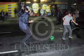 CIUDAD DE MÉXICO, 21JUNIO2018.- Damnificados del Multifamiliar Tlalpan cerraron la vialidad sobre dicha avenida para exigir la solución a sus demandas. Con sillas y pancartas, los inconformes piden que sean destinados los recursos para la reconstrucción y que no están dispuestos a pagar por un préstamo. Por otro lado, los niños de los antiguos habitantes del demolido módulo C1 del complejo, se unieron al partido de fútbol que se disputaba sobre toda la extensión de la calle. FOTO: GALO CAÑAS /CUARTOSCURO.COM