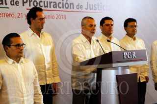 ACAPULCO, GUERRERO, 22JUNIO2018.- Víctor Antonio Carranca, vocero de la Conferencia Nacional de Procuración de Justicia, encabezó la conferencia de prensa que ofrecieron procuradores y fiscales de diferentes estado del país, al termino de la 39 Asamblea Plenaria "Conferencia Nacional de Procuración de Justicia", realizada en Acapulco, en donde estuvo presente el encargado de despacho de la PGR Alberto Elías Beltrán. FOTO: CARLOS ALBERTO CARBAJAL /CUARTOSCURO.COM