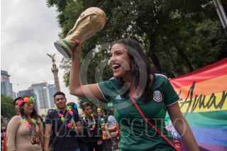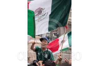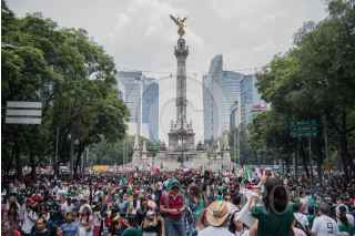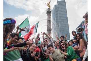 CIUDAD DE MÉXICO, 23JUNIO2018.- Miles de personas se concentraron en el Ángel de la Independencia para celebrar la victoria del conjunto mexicano frente a su similar de Corea del Sur, con un marcador a favor de 2 a 1, partido que representa el segundo partido del tricolor en fase de grupos de la Copa del Mundo Rusia 2018. FOTO: MARIO JASSO /CUARTOSCURO.COM