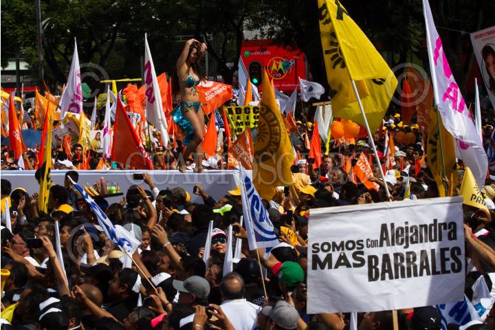 CIUDAD DE MÉXICO, 24JUNIO2018.- Alejandra Barrales, candidata a la Jefatura de Gobierno, y Ricardo Anaya, candidato a la Presidencia de la República, ambos por el frente conformado por los partidos PRD, PAN y Movimiento Ciudadano, encabezaron su cierre de campaña en el Ángel de la Independencia, estimaciones oficiales calculan la asistencia de más de cien mil personas. FOTO: MOISÉS PABLO /CUARTOSCURO.COM