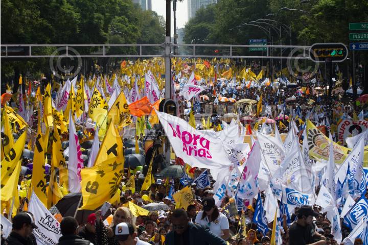 CIUDAD DE MÉXICO, 24JUNIO2018.- Alejandra Barrales, candidata a la Jefatura de Gobierno, y Ricardo Anaya, candidato a la Presidencia de la República, ambos por el frente conformado por los partidos PRD, PAN y Movimiento Ciudadano, encabezaron su cierre de campaña en el Ángel de la Independencia, estimaciones oficiales calculan la asistencia de más de cien mil personas. FOTO: MOISÉS PABLO /CUARTOSCURO.COM