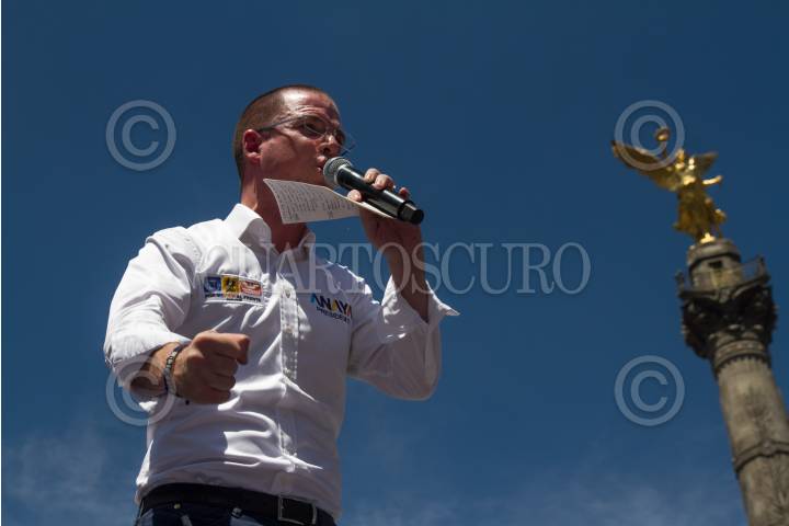 CIUDAD DE MÉXICO, 24JUNIO2018.- Alejandra Barrales, candidata a la Jefatura de Gobierno, y Ricardo Anaya, candidato a la Presidencia de la República, ambos por el frente conformado por los partidos PRD, PAN y Movimiento Ciudadano, encabezaron su cierre de campaña en el Ángel de la Independencia, estimaciones oficiales calculan la asistencia de más de cien mil personas. FOTO: MOISÉS PABLO /CUARTOSCURO.COM