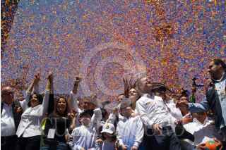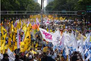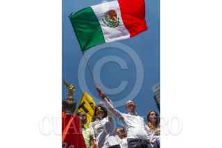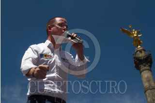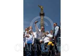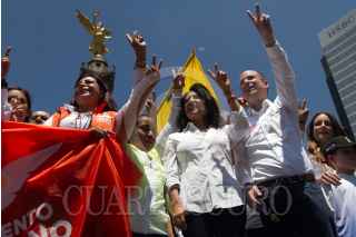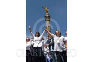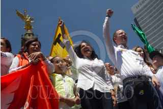 CIUDAD DE MÉXICO, 24JUNIO2018.- Alejandra Barrales, candidata a la Jefatura de Gobierno, y Ricardo Anaya, candidato a la Presidencia de la República, ambos por el frente conformado por los partidos PRD, PAN y Movimiento Ciudadano, encabezaron su cierre de campaña en el Ángel de la Independencia, estimaciones oficiales calculan la asistencia de más de cien mil personas. FOTO: MOISÉS PABLO /CUARTOSCURO.COM