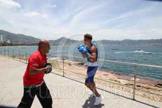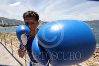 ACAPULCO, GUERRERO, 24JUNIO2018.- El joven boxeador Gustavo “el Dorado” Rivera Ríos Sánchez, representante de la entidad en boxeo, ganó la medalla de bronce en la olimpiada nacional 2018, efectuada en Chihuahua, Chihuahua. Gustavo Rivera es entrenado por su manager Enrique Zacapala Guzmán, quien se encuentra al frente del club de la Unidad Deportiva Acapulco. A pesar de haber ganado, el joven boxeado continúa entrenando en la costera, justo al lado del parque de la Reyna. FOTO: BERNANDINO HERNÁNDEZ /CUARTOSCURO.COM