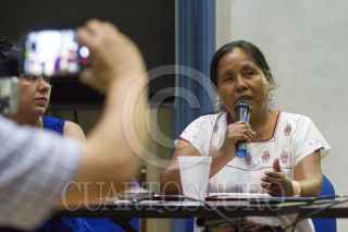 MONTERREY, NUEVO LEÓN, 25JUNIO2018.- La vocera del Congreso Nacional Indigenista y ex candidata independiente a la presidencia; María de Jesús Patricio "Marichuy" acude a la ciudad de Monterrey a sostener encuentros con colectivos independientes en resistencia los días 25 y 26 de junio. En rueda de prensa, miembros de la organización aseguran no buscarán al próximo presidente electo, consideran a su vez, quien se postule titular del ejecutivo deberá buscarlos a ellos para hablar de sus propuestas. FOTO: GABRIELA PÉREZ MONTIEL /CUARTOSCURO.COM