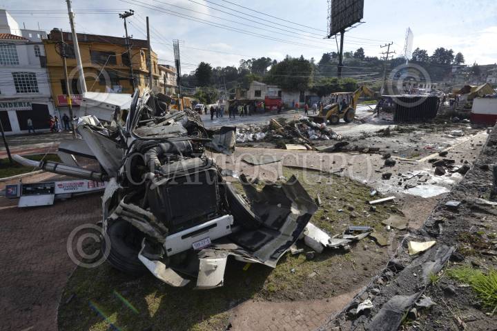 LERMA, ESTADO DE MÉXICO, 25JUNIIO2018.- Un tráiler que transportaba 30 toneladas de químicos en dos remolques volco en el kilómetro 43 de la carretera México-Toluca, dejando daños a una camioneta de pasaba por el lugar y destruyendo un kiosco en el lugar, no se registraron lesionados. FOTO: ARTEMIO GUERRA BAZ /CUARTOSCURO.COM