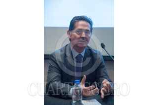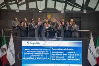 CIUDAD DE MÉXICO, 26JUNIO2018.-Javeir Artigas, director general de BTG Pactual México y Luis Armando Álvarez, durante la conferencia de prensa con motivo del listado del Oferta Pública Restringida de Certificados Bursátiles Fiduciarios Inmobiliarios de Upsite México, con clave de cotización FIBRAUP, en la Bolsa Mexicana de Valores. FOTO: MARIO JASSO /CUARTOSCURO.COM