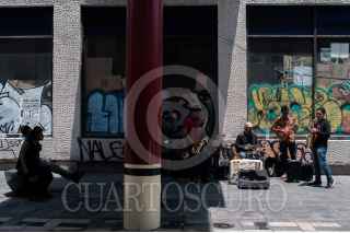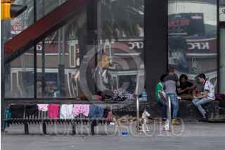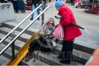 CIUDAD DE MÉXICO, 26JUNIO2018.- Una mujer le da una moneda a un señor de la tercera edad que pide limosna sentado en las escaleras del metro Chapultepec. FOTO: DIEGO SIMÓN SÁNCHEZ /CUARTOSCURO.COM