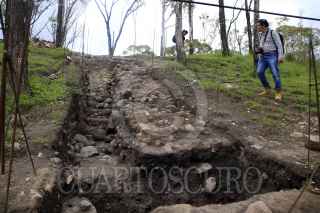 PUEBLA,PUEBLA, 26JUNIO2018.- El gobierno del estado de Puebla, dio a conocer el descubrimiento de la muralla de una pirámide de unos 1200 años de antigüedad en el cerro de Amalucan, durante el trabajo de rehabilitación del parque. FOTO: HILDA RÍOS/ CUARTOSCURO.COM
