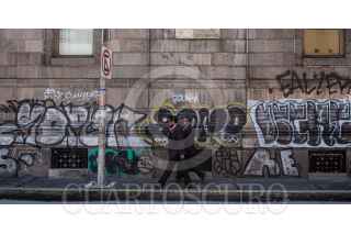 CIUDAD DE MÉXICO, 27JUNIO2018.- Oficinistas transitan por las calles llenas de graffitis hacia sus empleos. La historia del graffiti en México resulta incierta, algunos historiadores aseguran que llegó de la frontera norte con Estados Unidos por la ciudad de Tijuana. FOTO: TERCERO DÍAZ /CUARTOSCURO.COM