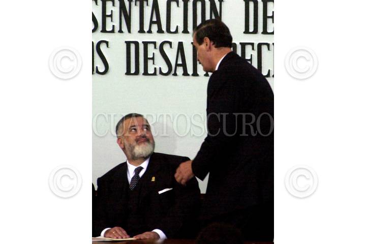 La Presidenta de la Mesa Directiva en la Cámara de Diputados, Beatriz Paredes da una cordial bienvenida a José Luis Soberanes, Presidente de la CNDh, en el recinto de San Lázaro. FOTO: Christian Palma/CUARTOSCURO.COM
