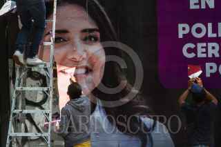 CIUDAD DE MÉXICO, 27JUNIO2018.- Retiro de publicidad electoral de Alejandra Barrales, quien compite a la jefatura de gobierno por la coalición "Por la CDMX al Frente", que se encontraba colocada en vallas publicitarias de la avenida Lomas de Virreyes. FOTO: MOISÉS PABLO /CUARTOSCURO.COM