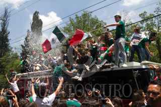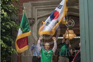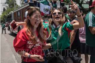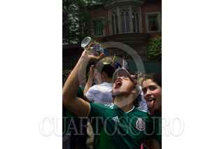 CIUDAD DE MÉXICO, 27JUNIO2018.- Jóvenes festejaron el pase de la Selección Mexicana a la segunda fase la Copa del Mundo Rusia 2018 frente a la embajada de Corea del Sur, esto a pesar de que el tricolor perdió 3-0 ante Suecia, pero con la combinación de la victoria de los surcoreanos de 2-0 ante Alemania permitió avanzar al "Tri" como segundo lugar de su grupo. Los aficionados lanzaron consignas a favor de los coreanos agradecidos por la "ayudadita". FOTO: MOISÉS PABLO /CUARTOSCURO.COM