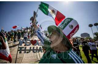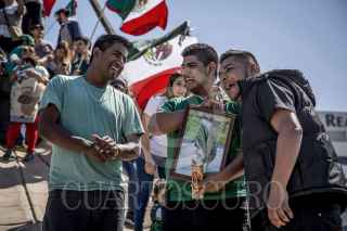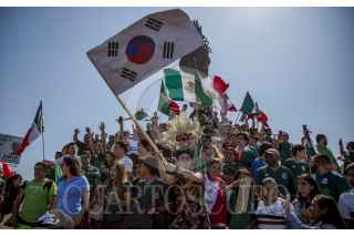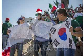 TIJUANA, BAJA CALIFORNIA, 27JUNIO2018.- Decenas de tijuanenses festejaron el pase a octavos de final en el mundial de Rusia 2018, a pesar de la derrota de la Selección Mexicana ante Suecia con marcador de 3-0. Algunos aficionados ondearon banderas coreanas en la glorieta Cuauhtémoc después de que el equipo asiático derrotara a la selección alemana, permitiendo que el equipo tricolor avance en segundo lugar de grupo. FOTO: OMAR MARTÍNEZ /CUARTOSCURO.COM