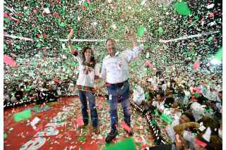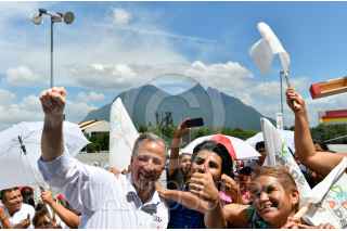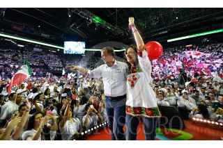 MONTERREY, NUEVO LEÓN, 27JUNIO2018.- José Antonio Meade Kuribreña, candidato a la presidencia de la República por la coalición "Todos por México", encabezó el primero de los dos cierres de campañas que protagonizará el día de hoy. El candidato priista acudió acompañado de su esposa Juana Cuevas. Ante cientos de personas que se dieron cita en la Arena Monterrey afirmó que la mayoría silenciosa y pacífica de nuestro país le permitirá ganar los comicios el próximo domingo. FOTO: CUARTOSCURO.COM