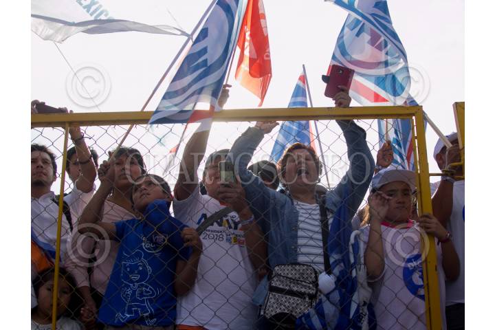LEÓN, GUANAJUATO, 27JUNIO2018.- Ricardo Anaya Cortés, candidato a la presidencia de la República por la coalición "Por México al Frente" realizó su cierre de campaña en la Mega Velaria del estado. Acompañado del candidato a la gubernatura del estado, Diego Sinhue y del candidato a presidente municipal Héctor López Santillana. FOTO: GALO CAÑAS /CUARTOSCURO.COM