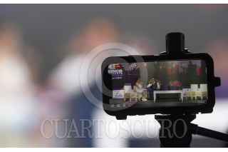 MONTERREY, NUEVO LEÓN, 27JUNIO2018.- Jaime Rodríguez "El Bronco" candidato a la presidencia de México, realizó el cierre de su campaña de manera cibernética en un set de televisión, en un programa enlazado con simpatizantes de los 31 estados de la república, conducido por Lolita Cortéz. FOTO: GABRIELA PÉREZ MONTIEL /CUARTOSCURO.COM