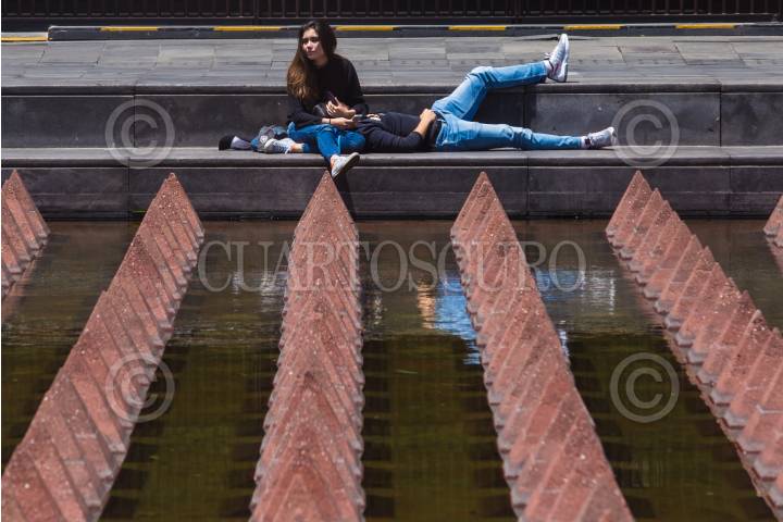 CIUDAD DE MÉXICO, 28JUNIO2018.- Una persona permanece sentaday recargada en un muro pintado con arte urbano ubicado en el cruce de las avenidas Paseo de la Reforma y López Rayón . FOTO: MARIO JASSO /CUARTOSCURO.COM