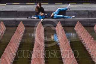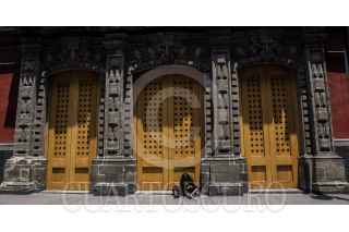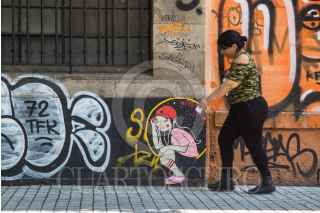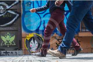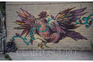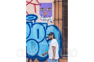 CIUDAD DE MÉXICO, 28JUNIO2018.- Una persona permanece sentaday recargada en un muro pintado con arte urbano ubicado en el cruce de las avenidas Paseo de la Reforma y López Rayón . FOTO: MARIO JASSO /CUARTOSCURO.COM