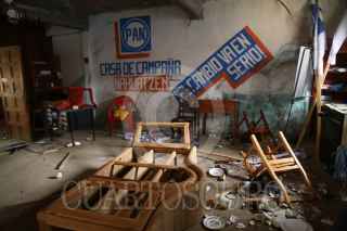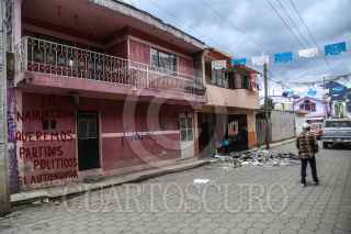 NAHUATZEN, MICHOACÁN. 30JUNIO208.- En víspera de la contienda electoral, la tensión en esta comunidad enclavada en el corazón de la Meseta Purépecha, se ha recrudecido; fueron saqueadas las oficinas del INE y de los comités municipales del PAN, PRI y PRD, y quemaron muebles y material electoral; hubo disparos de arma de fuego, y en los forcejeos, un comunero resultó con un dedo cercenado. Finalmente, el Instituto Nacional Electoral (INE) determinó la no instalación de casillas en la cabecera municipal de Nahuatzen, por lo que se cancelan las elecciones en el lugar luego de los hechos de violencia suscitados el viernes. FOTO: JUAN JOSÉ ESTRADA SERAFIN /CUARTOSCURO.COM