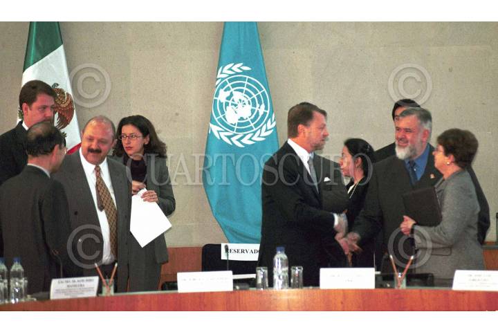 El director de la Unesco, Koichiro Matsuura, Jorge G. Castañeda y Reyes Tamez, al termino de la ceremonia de inauguración de la Conferencia Regional sobre la Educación en Derechos Humanos en América Latina y el Caribe. FOTO: Victoria Valtierra/CUARTOSCURO.COM
