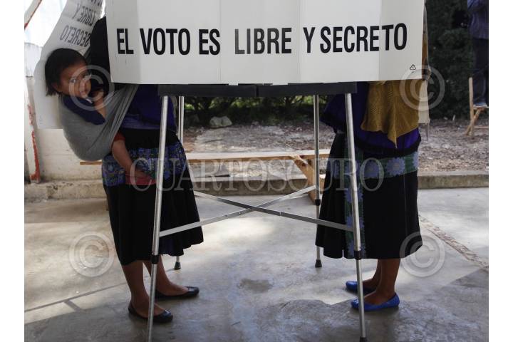 SAN CRISTOBAL DE LAS CASAS, CHIAPAS, 01JULIO2018.- Al rededor de 150 mujeres y hombres tsosiles desplazados del municipio de Chenalhó votaron en una casilla especial, dentro del campamento en el que se encuentra desde el 26 de mayo de 2016. Después de una disputa poselectoral por la presidencia municipal, este grupo de 250 personas salió del ejido Puebla tras el hostigamiento de un grupo paramilitar. El Instituto Nacional Electoral ordenó la instalación de esta casilla especial después de la solicitud de la comunidad, del Centro de Derechos Humanos Ku’untik, la Comisión Nacional de de Derechos Humanos y la ONU. FOTO: PEDRO ANZA /CUARTOSCURO.COM
