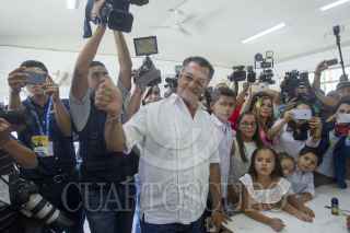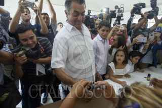 GARCÍA, NUEVO LEÓN, 01JULIO2018.- El candidato presidencial independiente con licencia Jaime Rodríguez Calderón "El Bronco" acudió a la casilla en el centro del municipio de García, Nuevo León para emitir su voto, acompañado de sus hijos menores. FOTO: GABRIELA PÉREZ MONTIEL /CUARTOSCURO.COM