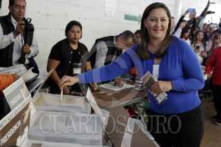 PUEBLA, PUEBLA 01JULIO2018.- Martha Érika Alonso, candidata a la gobernatura de Puebla por la coalición Por Puebla al Frente, emitió su voto en la capital poblana. FOTO: CUARTOSCURO.COM